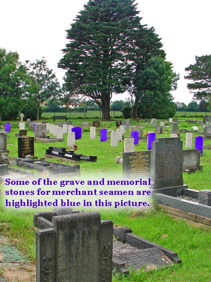 We have a map to show the locations of the cemetery, and of the Merchant Navy memorial in the town. This is approximately 700KB, and so may take a while to appear.